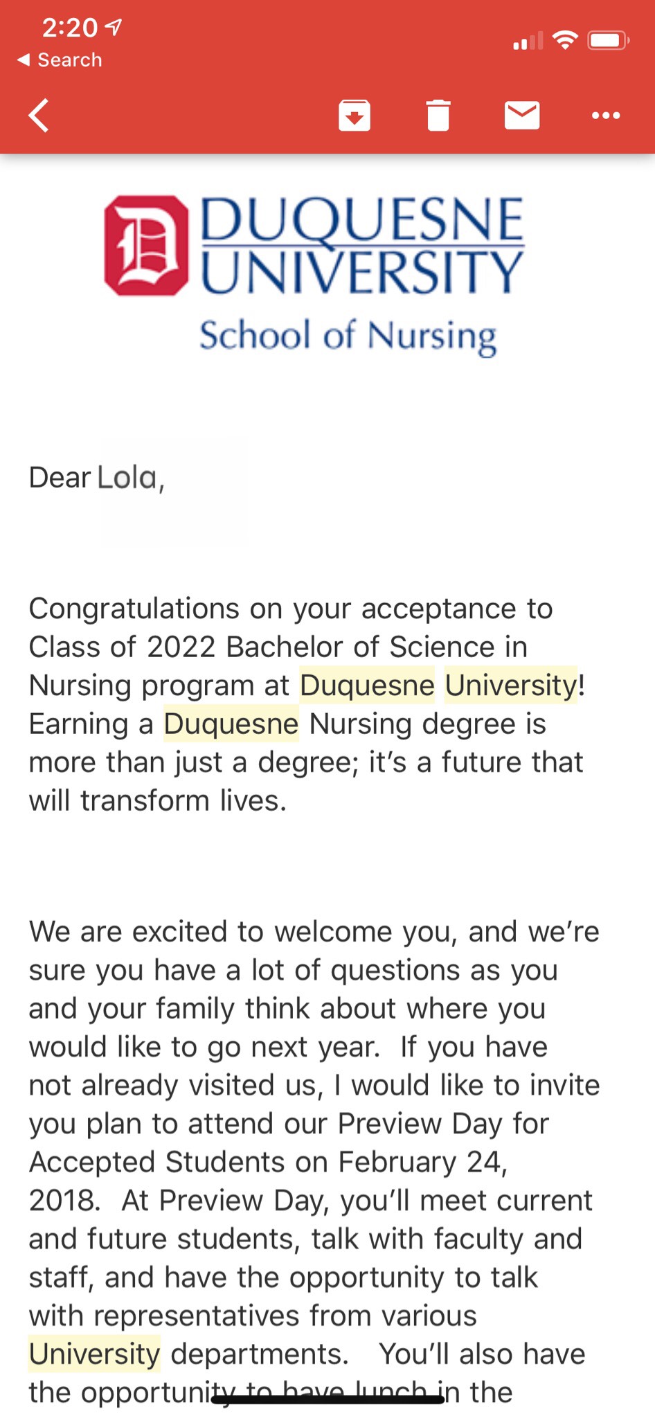 OMG! Just got accepted into Duquesne University! My DREAM school! Can’t wait to become a nurse! #woohoo π